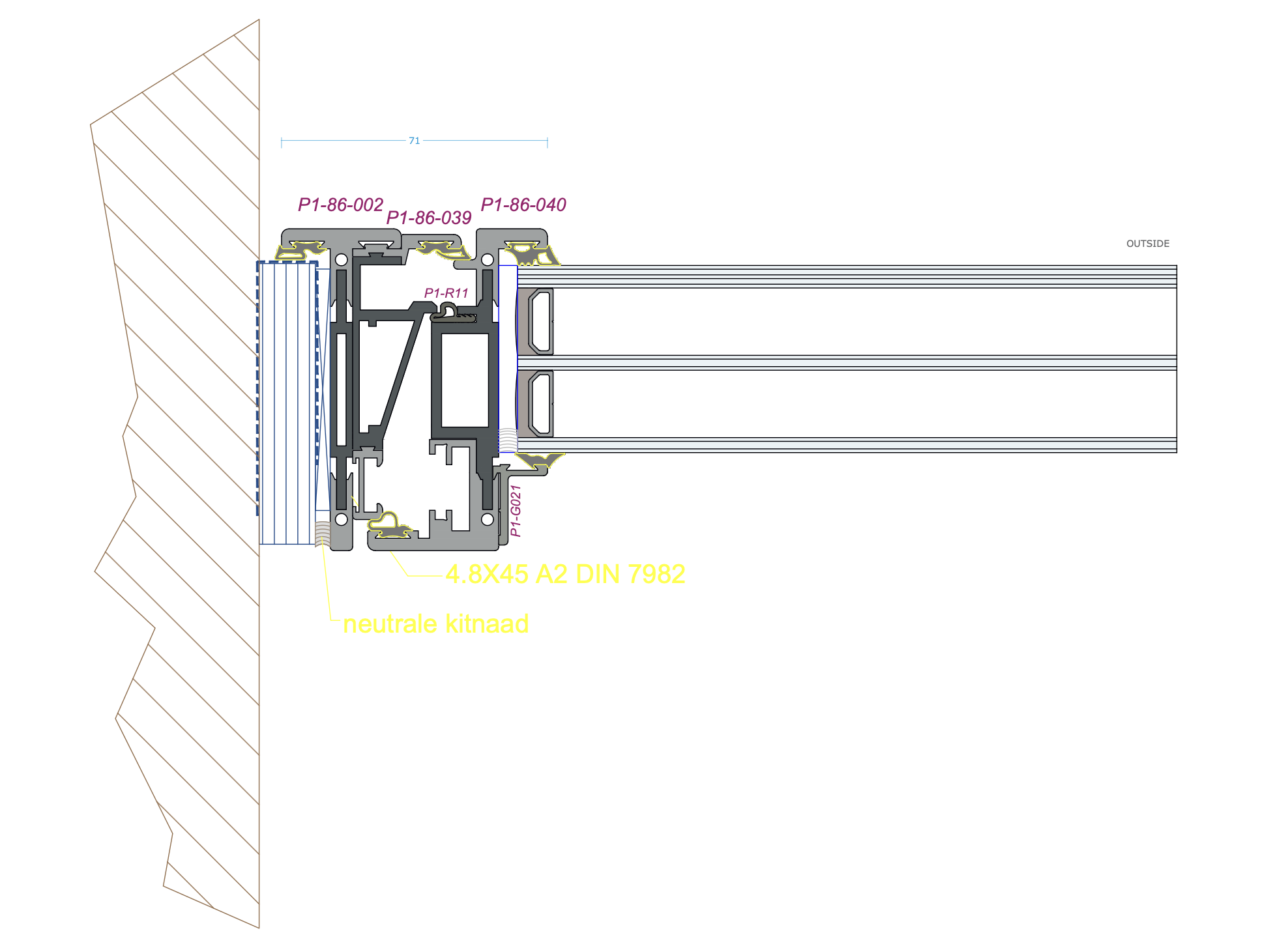 Thin aluminum alloy frame, outdoor visible surface structural frame+fan width up to 71mm