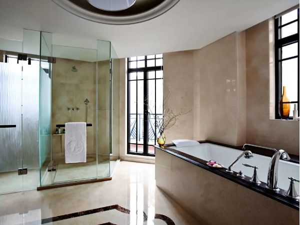 优雅复古的黑框门窗在地上投下长长短短的影子,在日光缓慢的移动中,耳畔传来那首曾经红遍上海滩的老歌《玫瑰玫瑰我爱你》。而将视线投向窗外,则是一番充满活力的当代都市景象,上海的过去、现在、未来就此交汇,而酒店则在似水年华中,成为城市变迁的见证与记录者。